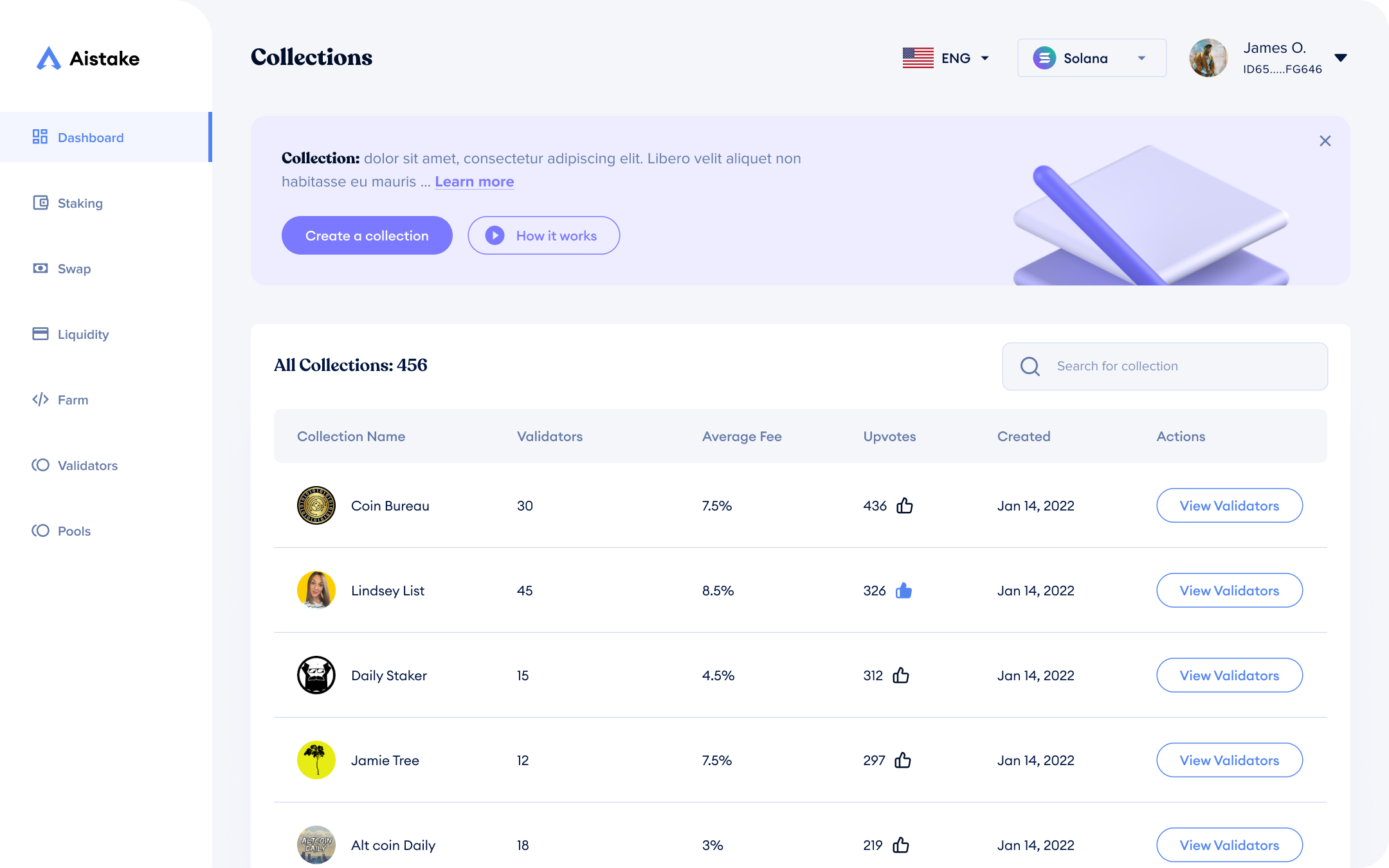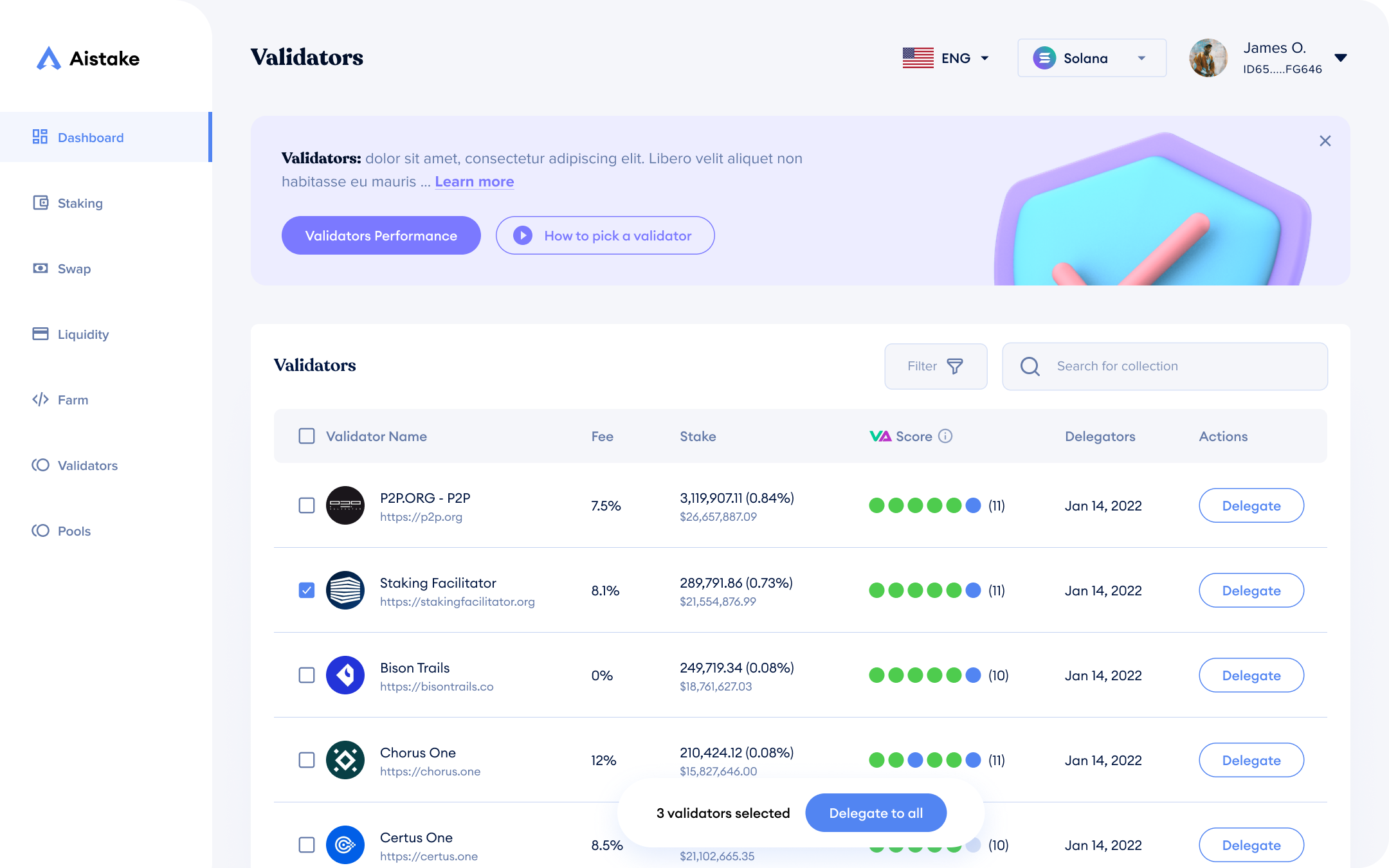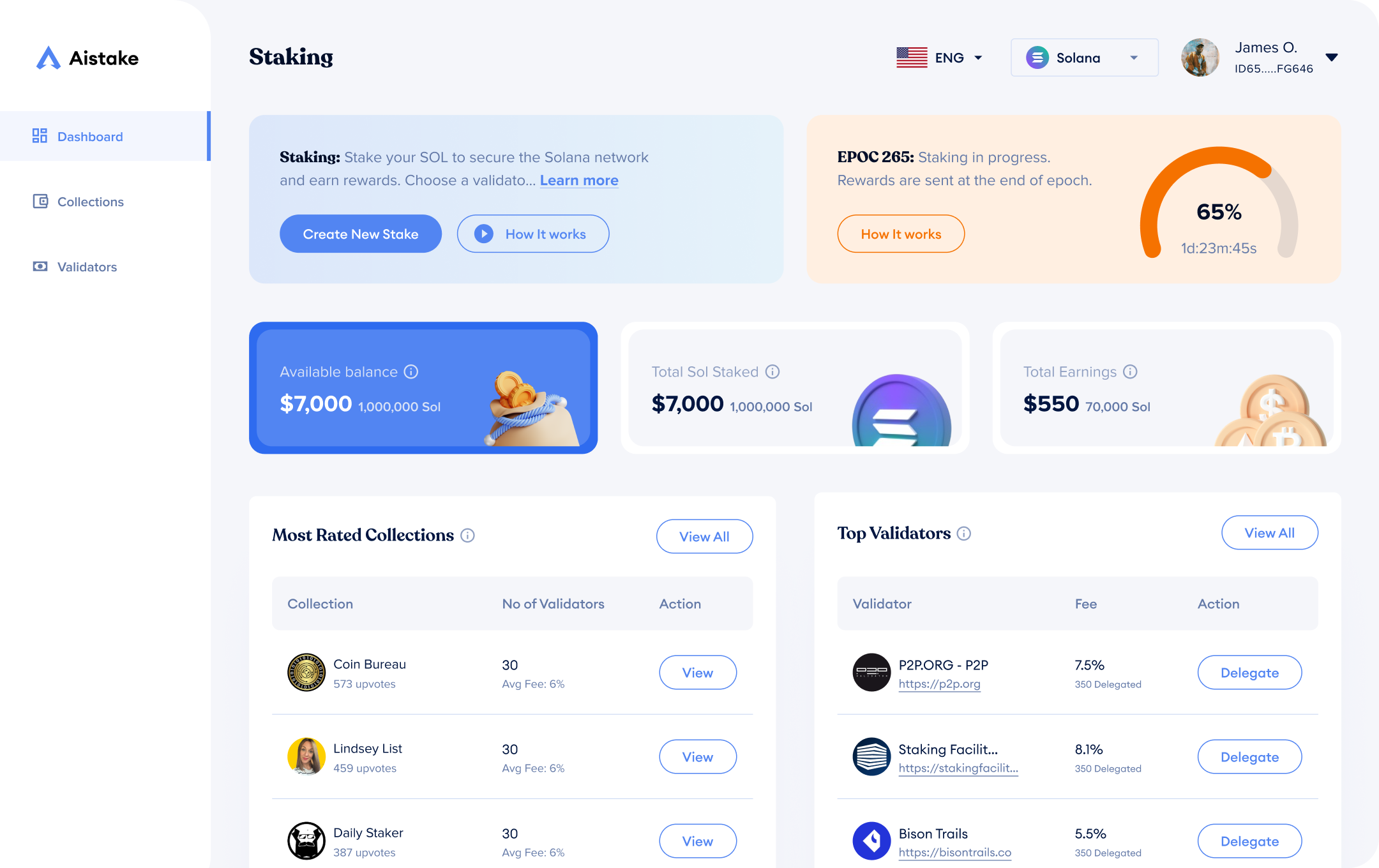 The dashboard serves as the central nervous system of the Aistake protocol, designed to provide immediate clarity. I prioritized a high-density, low-friction information architecture that surfaces critical metrics, such as total SOL staked, real-time earnings, and investment status.
